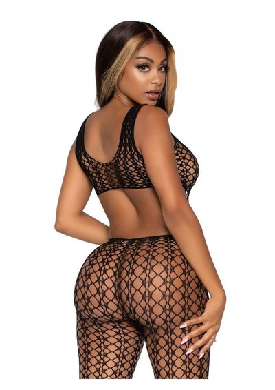 Lattice net cut-out footless tank bodystocking. O/S BLACK